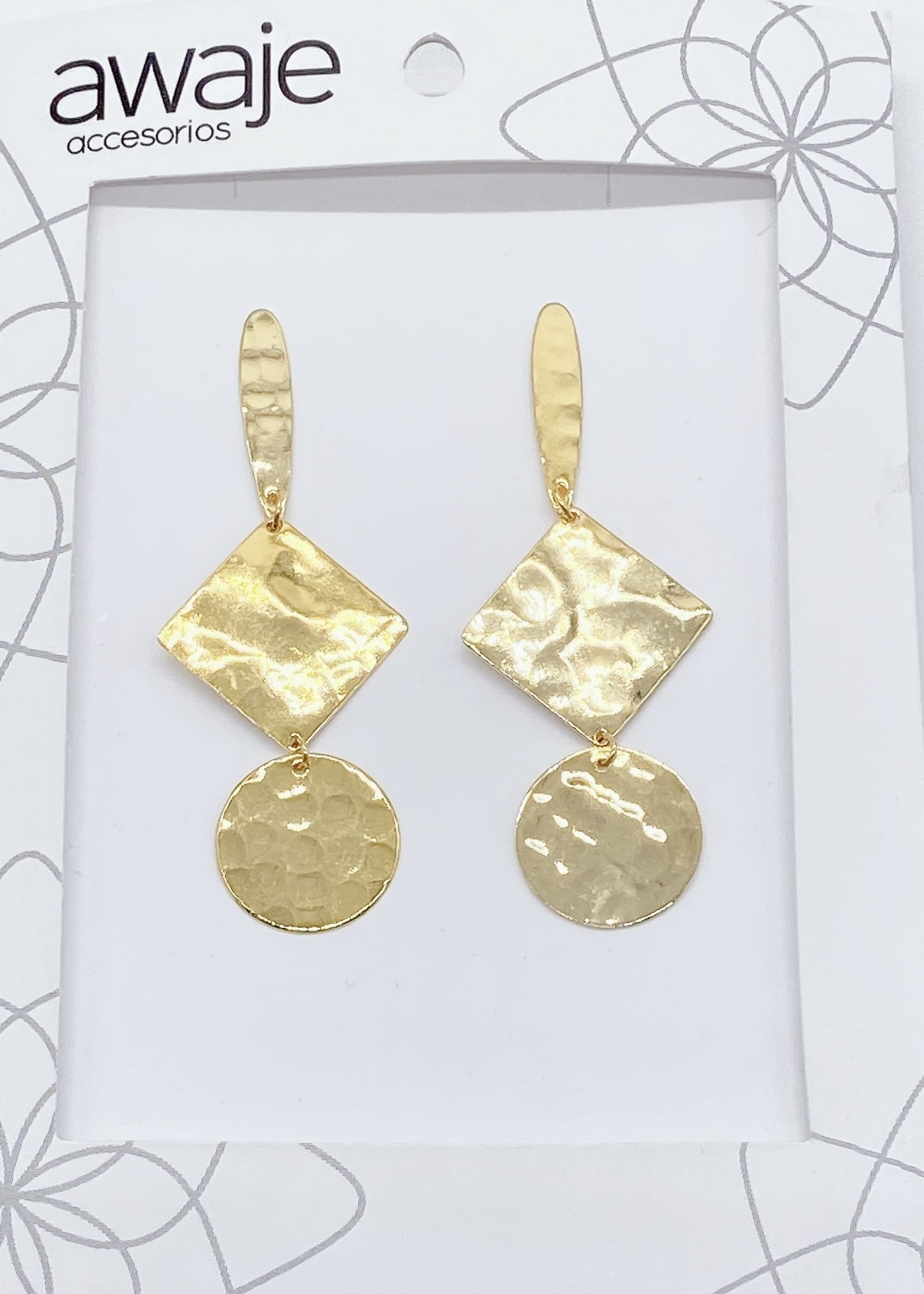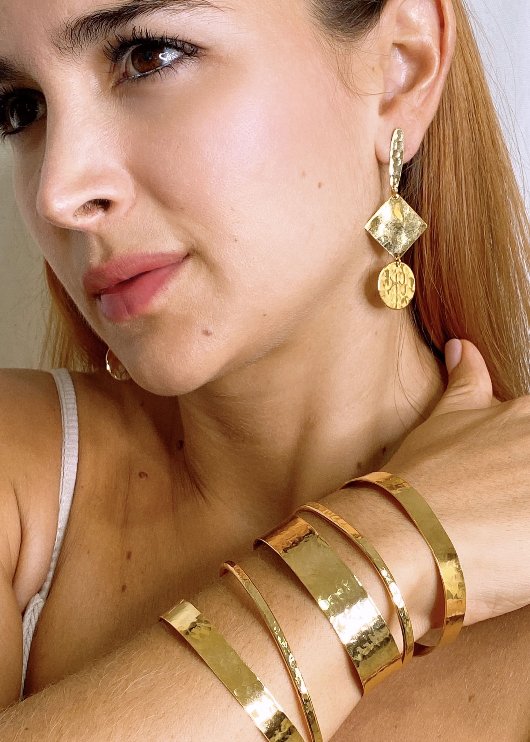 Earrings 3 Plates in Hammered Bronze, with 24K gold plating