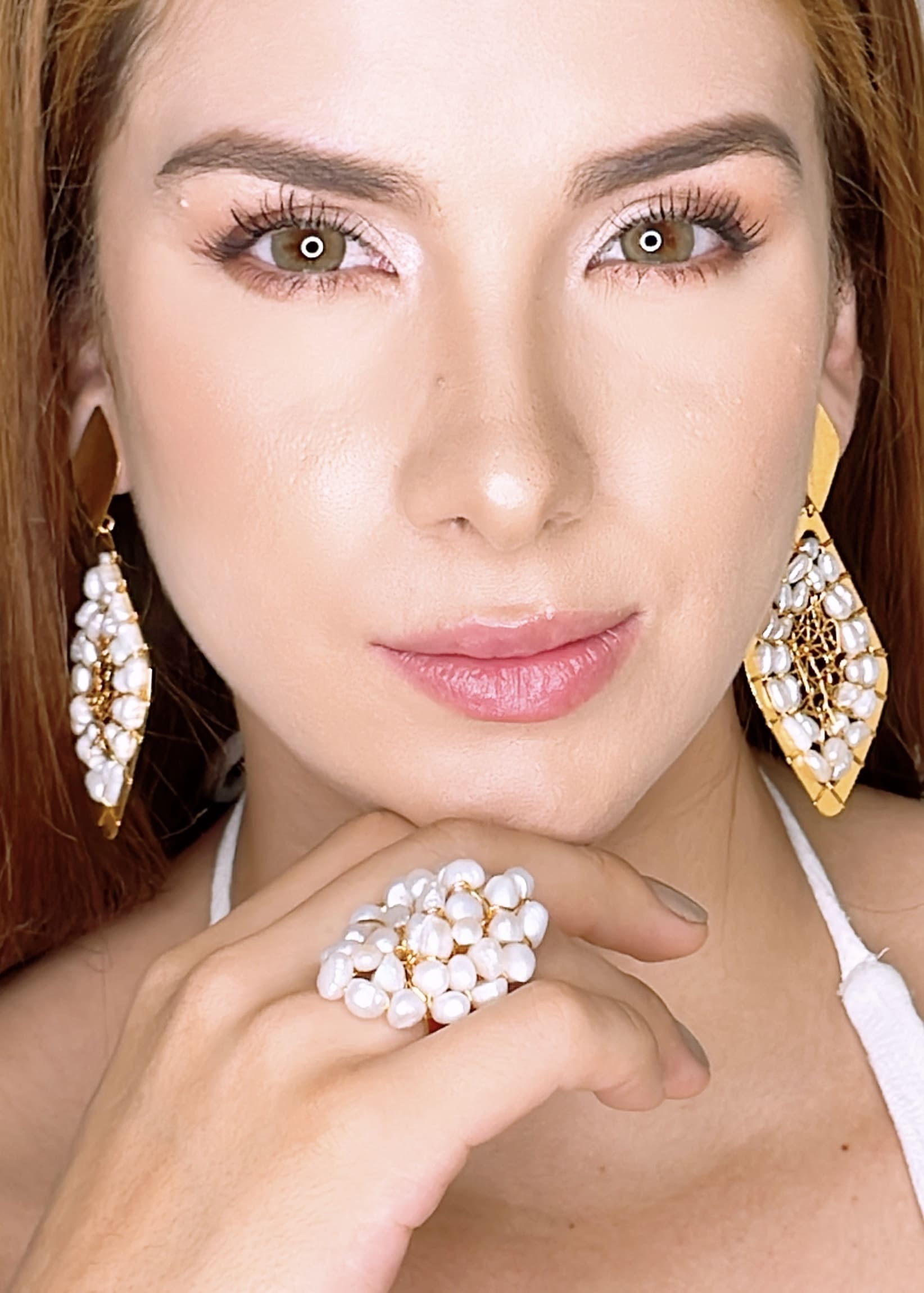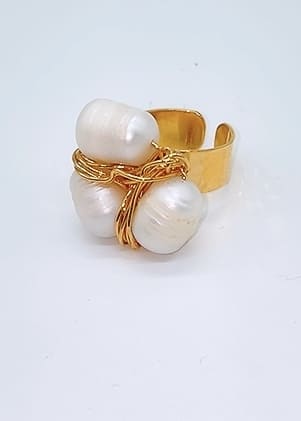 Anillo bordado en Alambrismo de Perla de Agua dulce con baño en oro de 24K, talla Ajustable