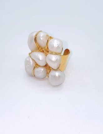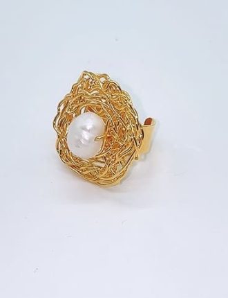 Anillo bordado en Alambrismo de Perla de Agua dulce con baño en oro de 24K, talla Ajustable