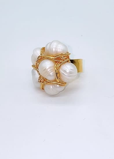Anillo bordado en Alambrismo de Perla de Agua dulce con baño en oro de 24K, talla Ajustable