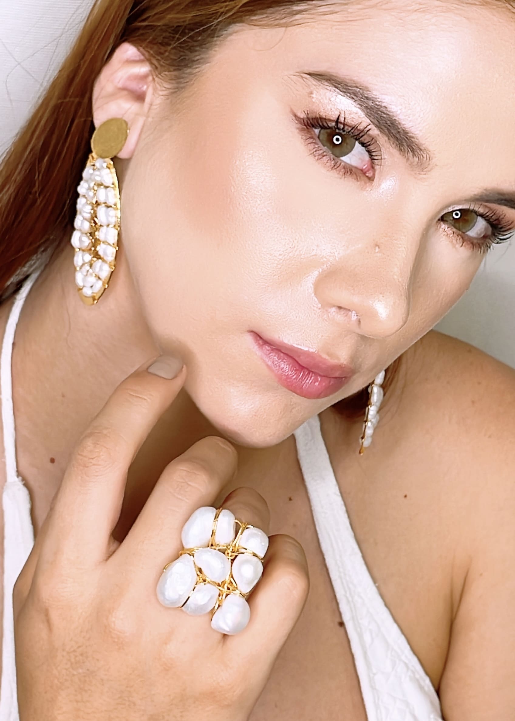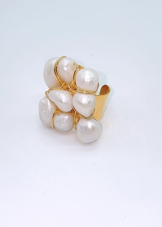 Anillo bordado en Alambrismo de Perla de Agua dulce con baño en oro de 24K, talla Ajustable