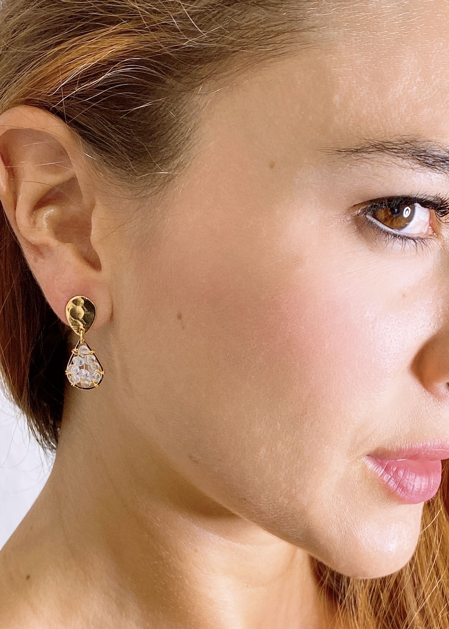 Earrings embroidered in wire mesh Teardrop 2 cm of crystals, 24K gold plated.