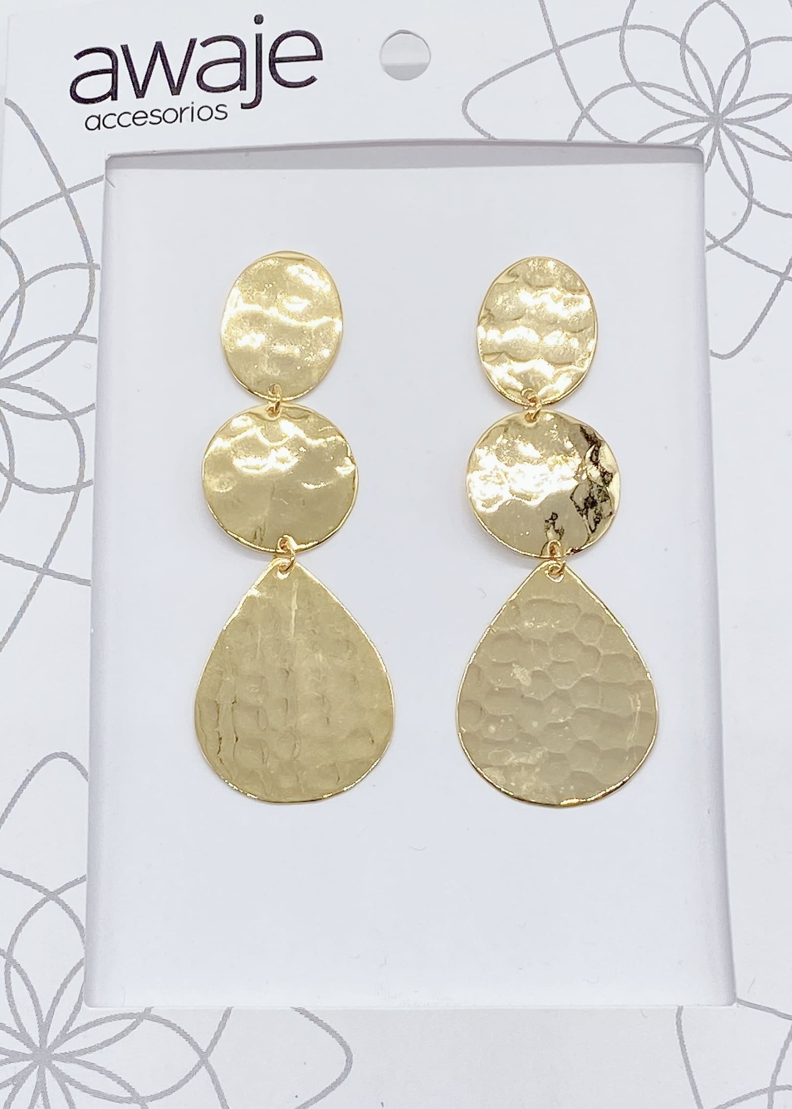 Earrings 3 Plates in Hammered Bronze, with 24K gold plating