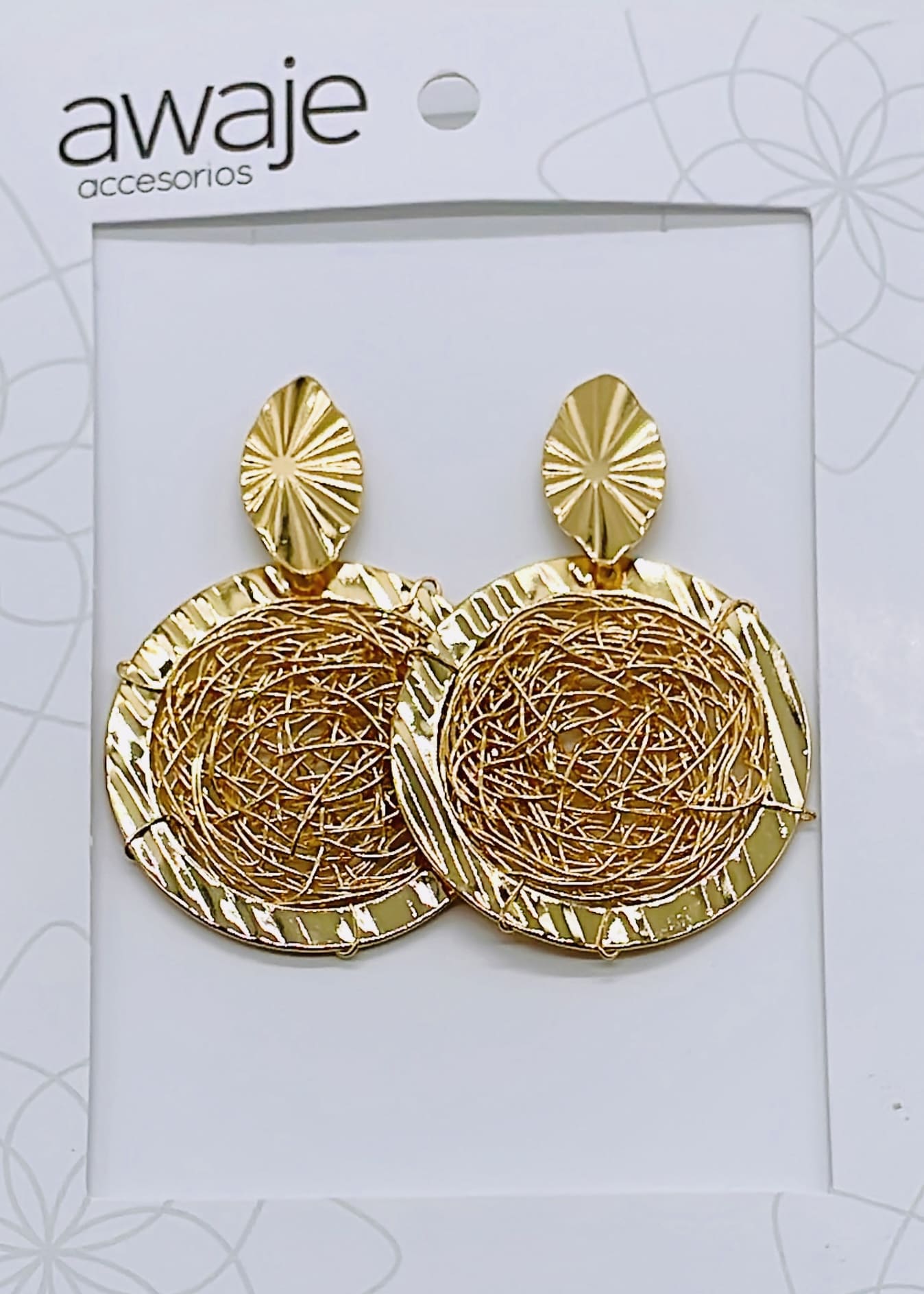 Earrings embroidered in 3 cm circle, gold plated in 24K gold.