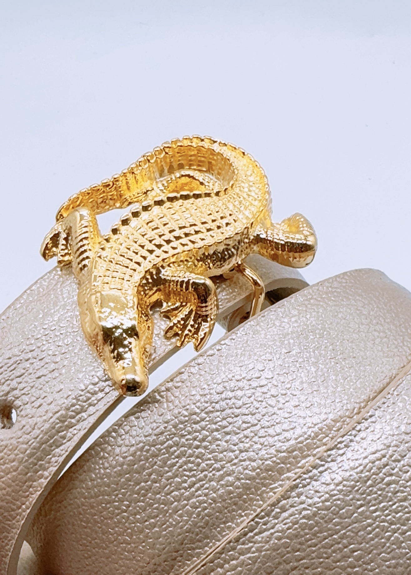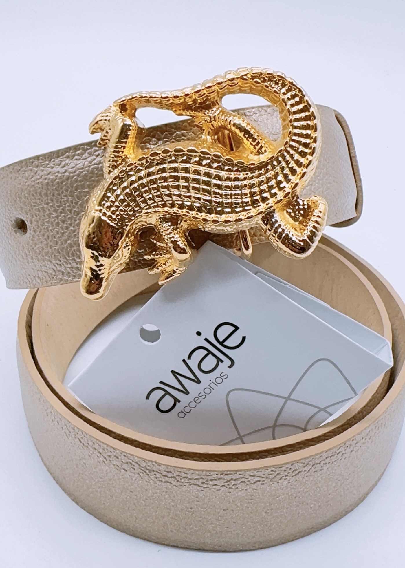 Correa de cuero 3 cm con Hebilla de Babilla 6 cm, con baño en oro de 24K