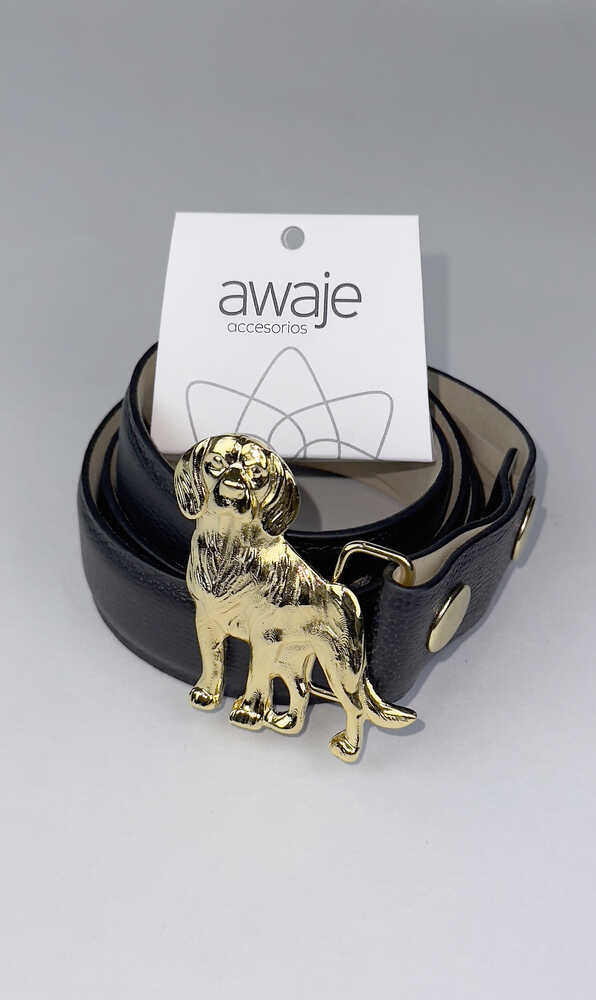 Correa de cuero 3 cm con Hebilla de Perro Golden Retriever 5,5 cm, con baño en oro de 24K