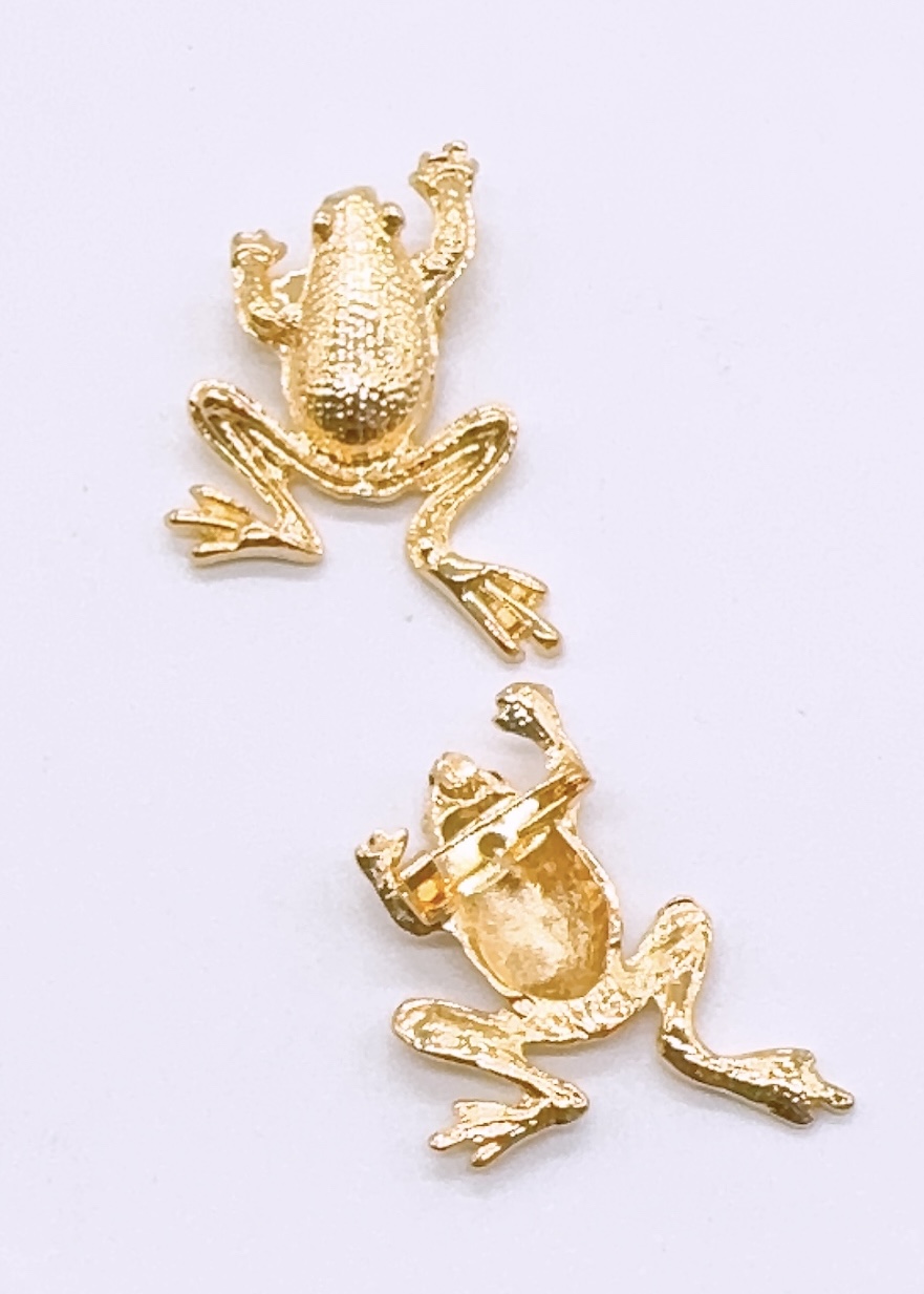 Prendedor de 2 Ranas saltarinas pequeñas 3 cm, con baño en oro de 24K
