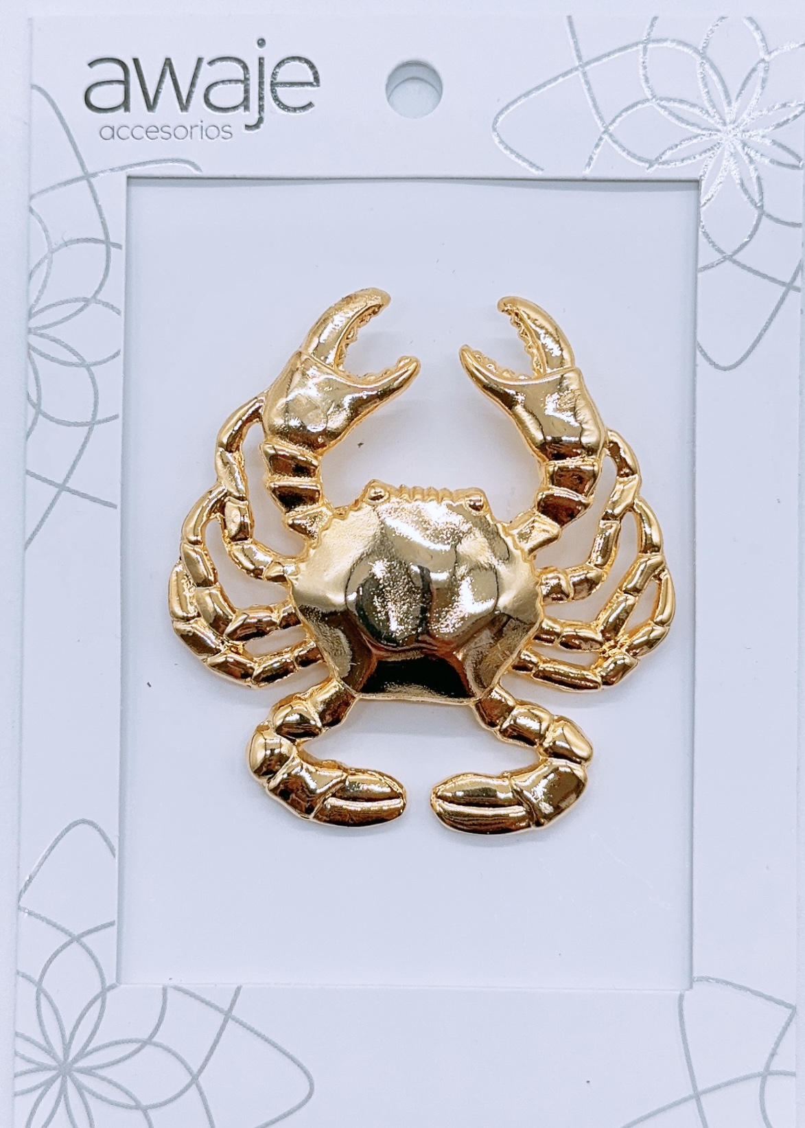 Prendedor Cangrejo 6,5 cm, con baño en oro de 24K