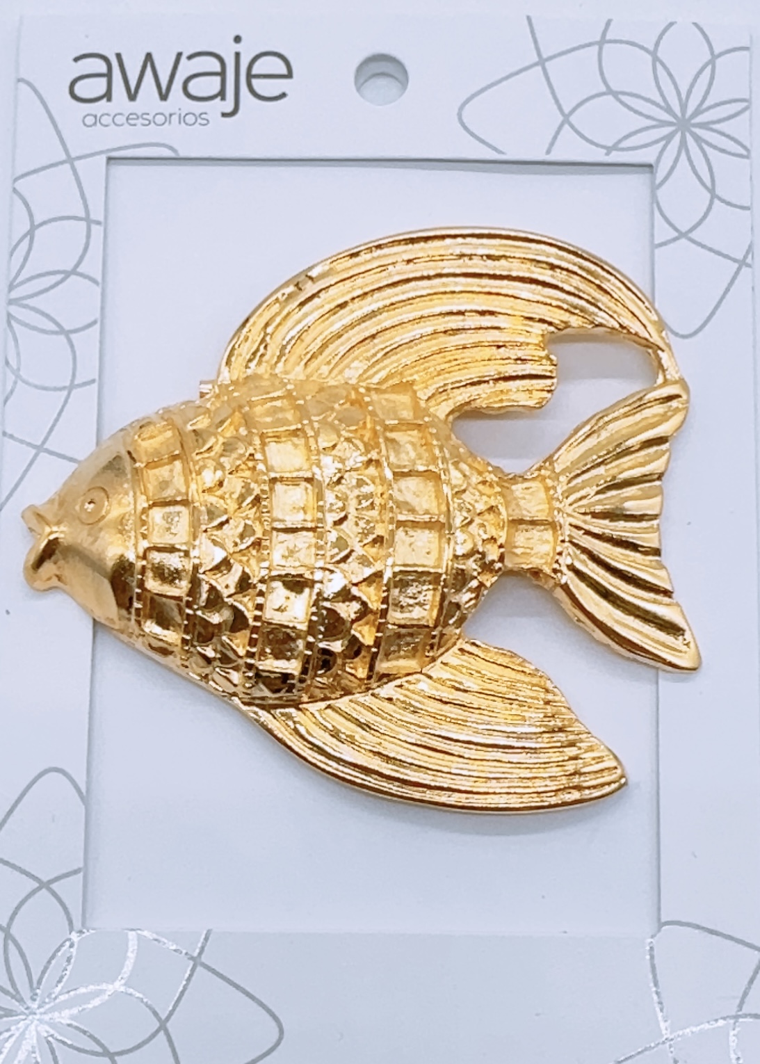 Prendedor de Pez 8 cm, con baño en oro de 24K