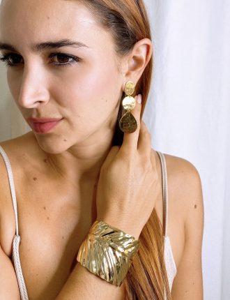 $75.000Earrings embroidered in wire mesh Teardrop 3 cm of Green Crystal, with 24K gold plating. -