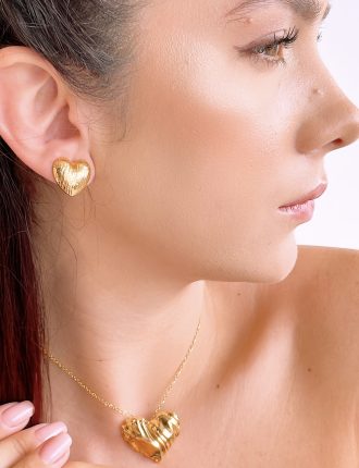 $64.000Arete y Dije con cadena de 40 cm de largo extencion de 5 cm, Perla de agua dulce Moneda 1 cm de diametro , baño en oro de 24K -